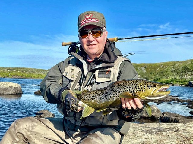 The weather last week was changeable, but generally as expected; fishing was possible. There were windy and rainy days, but there were also perfect, dry, and warm ones. The river level was maintained at a normal level, making fishing comfortable. The river temperature remained virtually constant, hovering around 12°C all week. Trout, while not greedy, responded to almost all types of flies. From classic Woolly Baggers to occasional dry flies and even mouse imitation lures. All trout pools of the Varzina trout camp worked. Salmon were occasionally caught on the lower reaches. Vladimir caught his biggest one of the week on a nymph. A male salmon measuring 99 cm, a decent trophy for such a fly and 0.25 mm monofilament. The size of the brown trout also pleased – five fish over 65 cm long. Igor caught the largest – 68 cm. The rest of the fish were also in good condition, with a few small-size samples. In total, 197 trout were caught on 10 rods. And eight salmon, what is not bad, without fanaticism. Not a bad result for this season, considering the last day of the week, which, due to the weather, gave a day off for both anglers and fish. As a bonus, on one of the last days of August, the Kola Peninsula presented us a bright northern lights display, the first we've seen this season. We look forward to seeing more in the following autumn session.