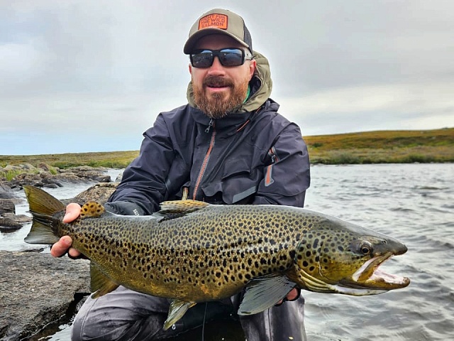 This brown trout fishing season can be called challenging. Initially, everything seemed rosy and promising, but in reality, things turned out differently. For some inexplicable reason, this year the brown trout were either inactive or simply entered the river in small numbers. In the most beloved and best pools, in the usual spots where this spotted predator usually hunts, there was a complete absence of them. Anglers had to constantly search for fish, devising ways to deceive them and entice them to bite. Believe it or not, entire "fly arsenal" was used to achieve only a few bites. But, it must be said, despite the small number of specimens caught, the quality was decent. Ten trout ranging in size from 65 to 69 cm, thirty-three trout from 60 to 64 cm, forty-four trout from 55 to 59 cm, and one record-breaking 74 cm!!! The rest, over 40 cm, also counted. In total, 193 brown trout and 7 salmon were caught on 12 rods. Of course, maybe we've gone a bit overboard in demanding unrealistic results from the river, but it must be said that we would have liked to feel the tension of the line more often, especially since all the weather conditions were perfect for good fishing. This includes the water temperature averaging 12°C, the excellent water level, and so on... For autumn, everything is very good, except for the slight breeze... But the northern lights have been delighting the fishermen for the last few days. Overall, the team is happy, thanks to them for their optimism and love of fishing. We're looking forward to the new team and believe in success.